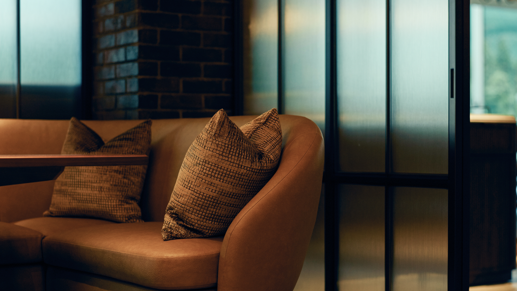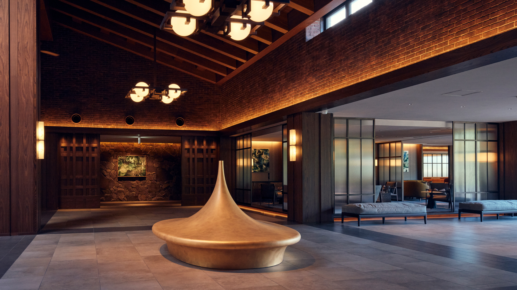 杢と煉瓦を基調とした重厚感とモダンで洗練された設えが趣きあるクラブハウス。 プレイ前後の滞在時間をリラックスして過ごしていただけます。