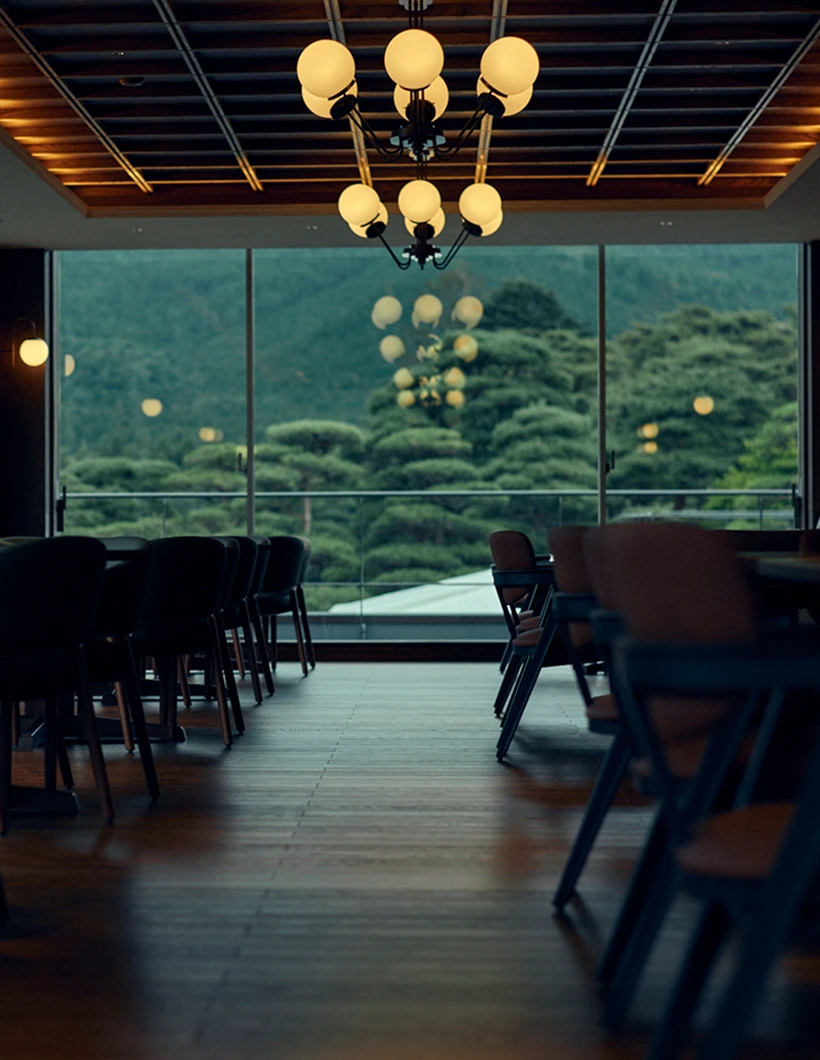 1960年代にオープンしたクラブハウスの風格を継ぎながら、強羅花壇の快適さとおもてなしを備えたオールデイダイニング「THE DINING」。