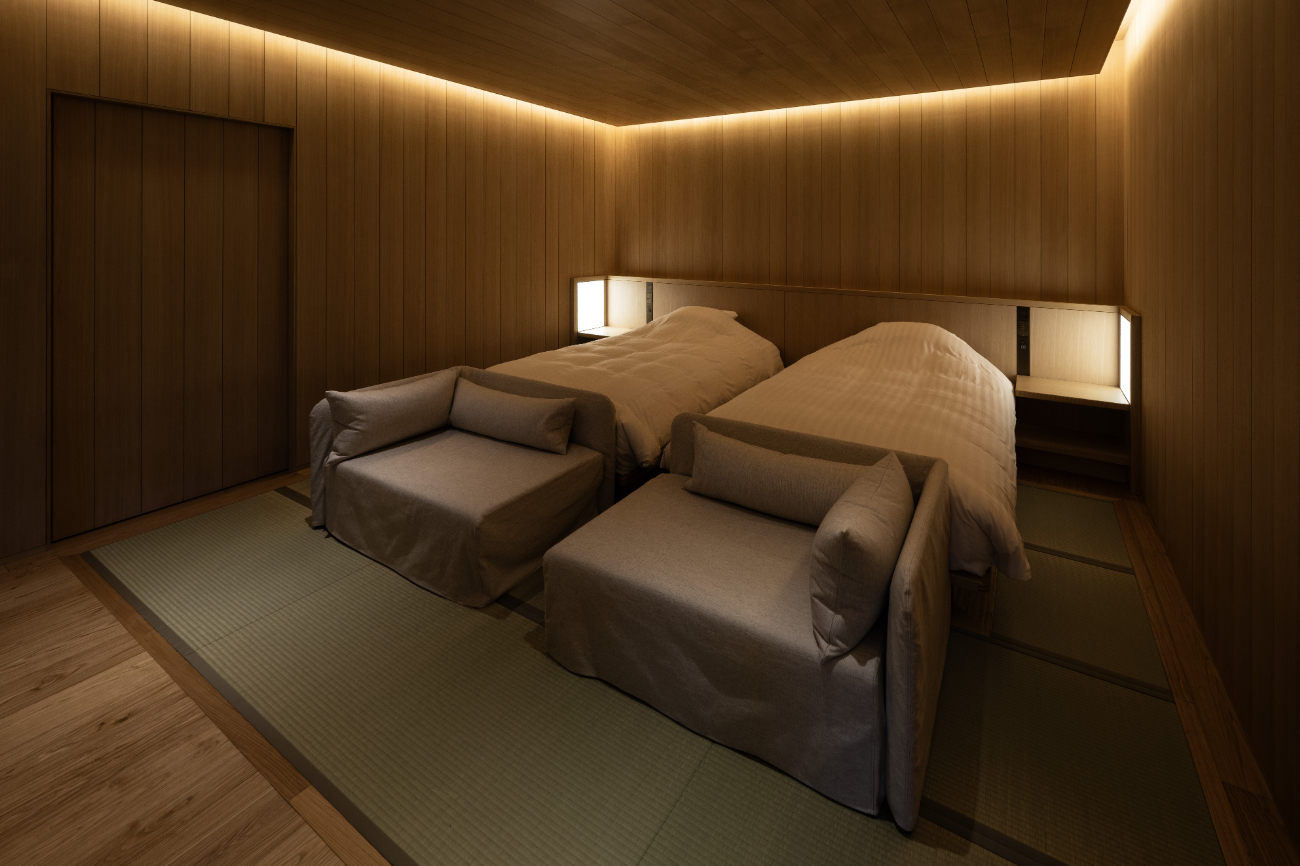 - Twin Western Beds + Futon Mats on flat tatami floor